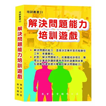 解決問題能力培訓遊戲![]() | 人才智慧採礦技術:KJ法在現場科學及TTQS的應用![]() | MBA-企管顧問教你這1堂人資課:活用9種考核評比武器,讓好人才留下來![]() |